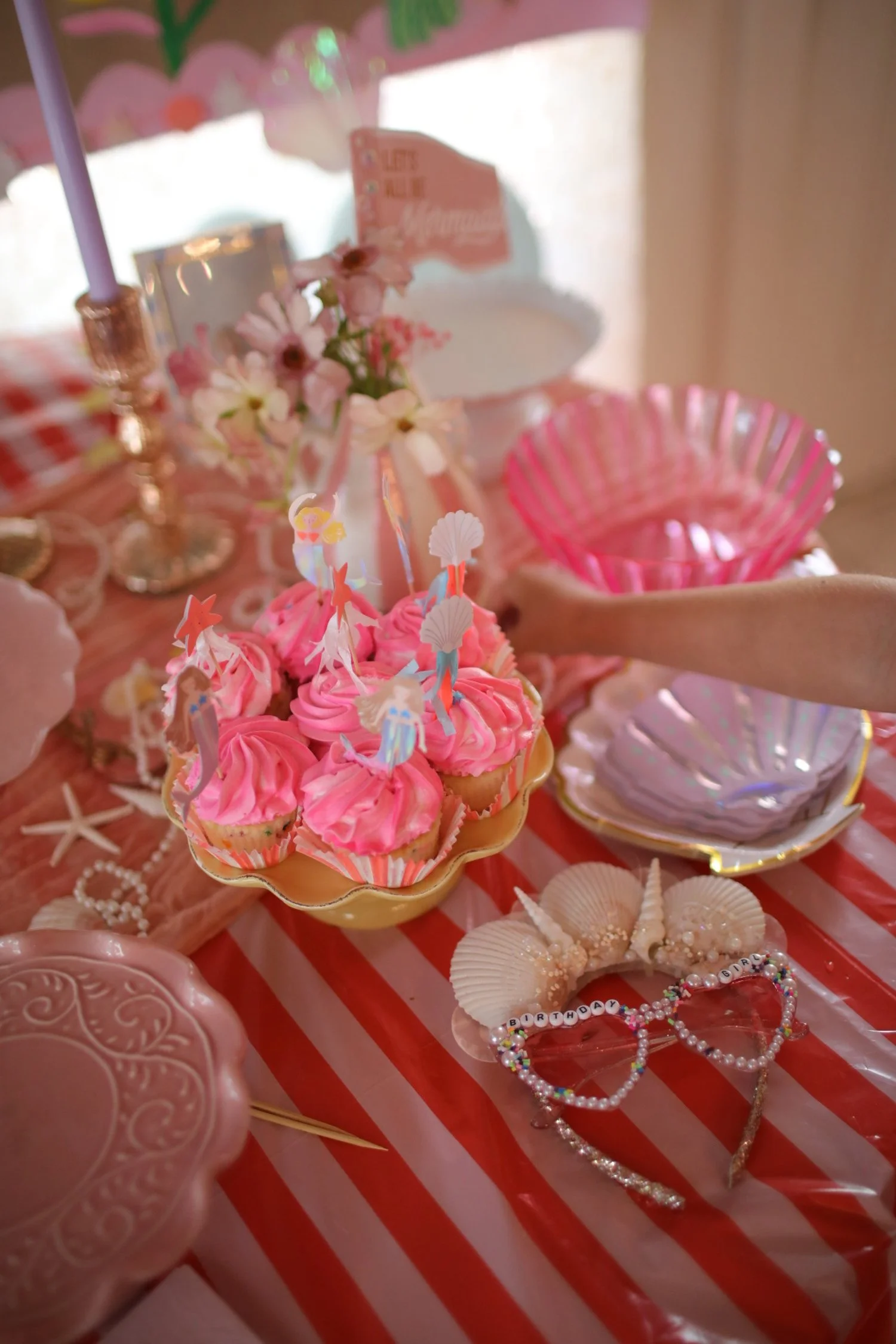 Cake and cupcakes were topped with sparkle-tastic decorations from a retired Meri Meri collection — and yes, the cake itself was from Whole Foods, proving that even grocery store desserts can look amazing with the right styling.