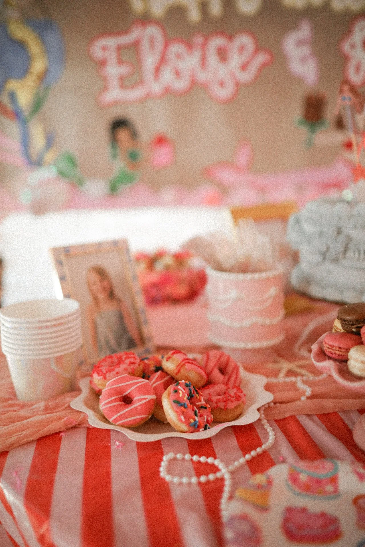 Heather sourced streamers, bunting garlands, and fringe decor that brought color and joy to every corner. Much of the party magic came from Meri Meri — including the bright “Happy Birthday” garland and the rainbow-hued streamers. The show-stopping backdrop was a DIY creation using disposable tablecloths and layered party streamers. It made the perfect spot for party pics and set the tone for the festive fun.