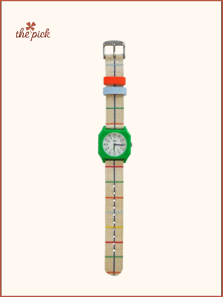 Our pick this week is the Notebook watch from the Mini Kyomo x Taxi Brousse collab — a playful mix of retro charm and bold colour, with its notebook-inspired strap. Designed for kids and grown-ups alike, it’s a nostalgic, feel-good accessory that adds instant personality to any outfit.